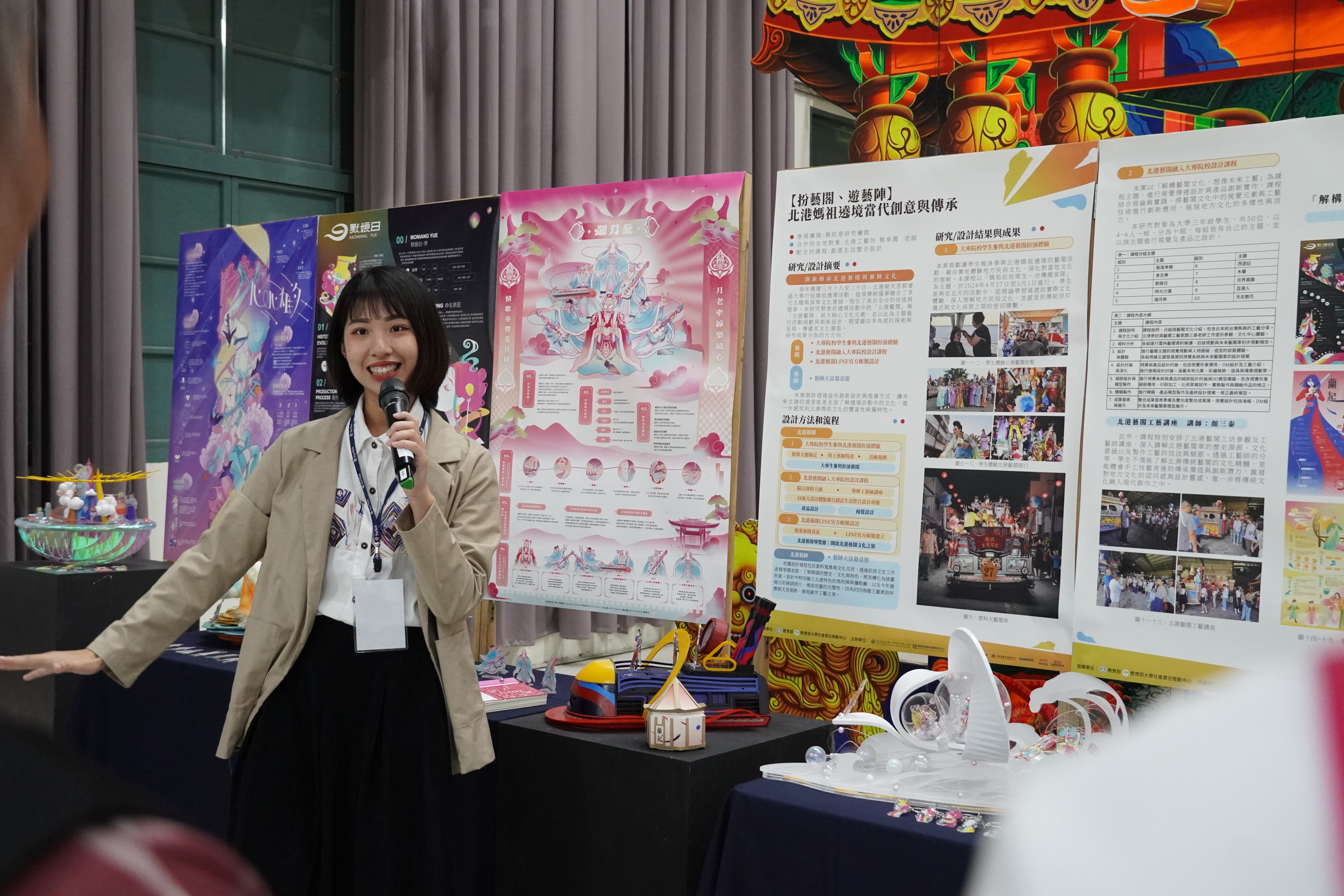 老師們也將廟宇文化轉化為設計教材:有將藝陣故事轉成大富翁桌遊的,有設計出AR詩詞導覽濾鏡的,也有製作文創商品放進在地小書店販售的。「學生的設計不再只為課堂交差,而是走進真實社會被使用、被看見。」黃教授強調。