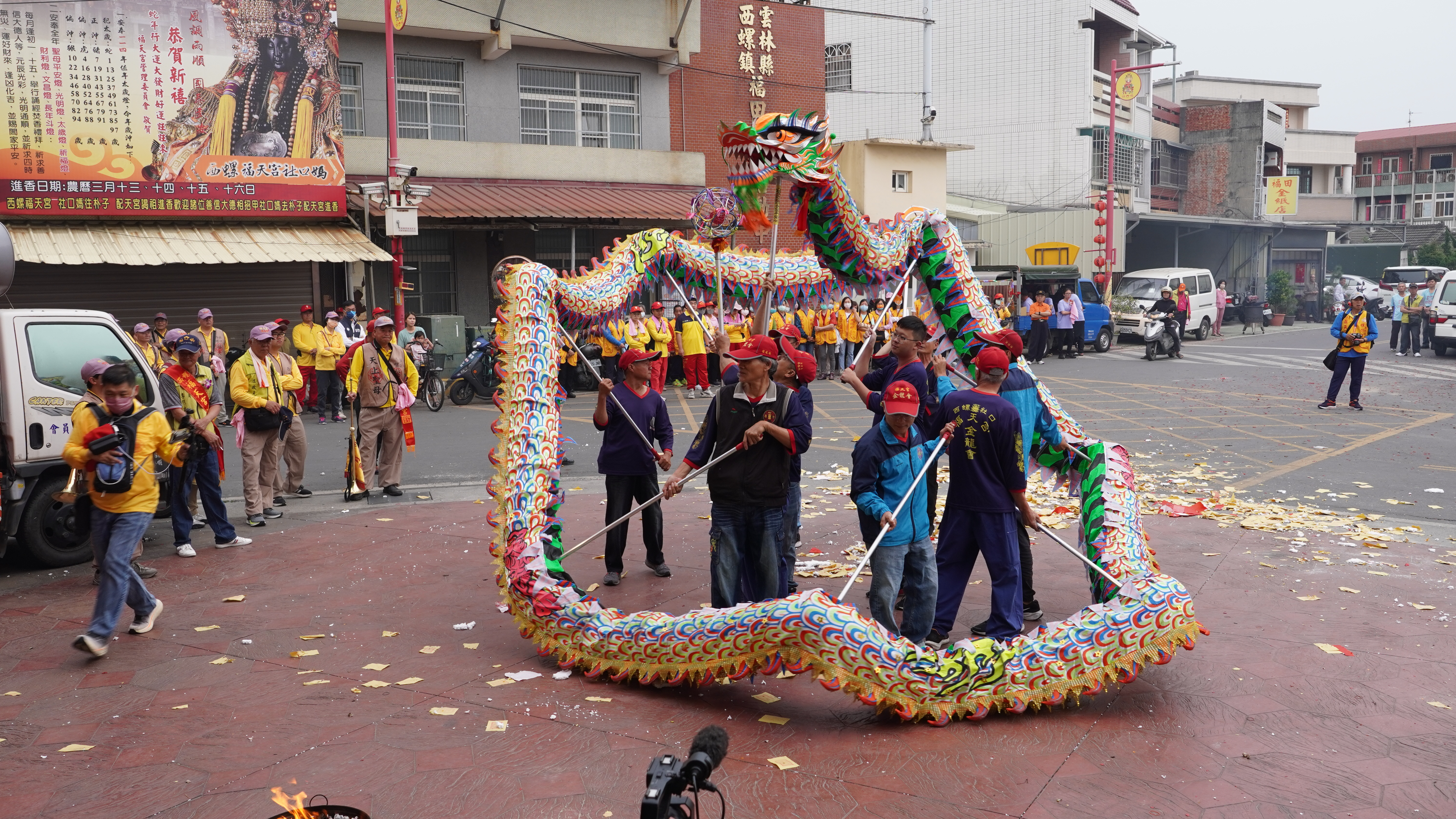 4 月 10 日至 4 月 13 日為西螺社口福天宮前往朴子配天宮舉行謁祖進香活動。團隊於起駕前即前往現場進行攝影紀錄,並同步觀察遶境隊伍中各陣頭的行進順序、角色分工與使用器具等內容,作為後續進行陣頭文化訪談與研究之重要基礎資料。